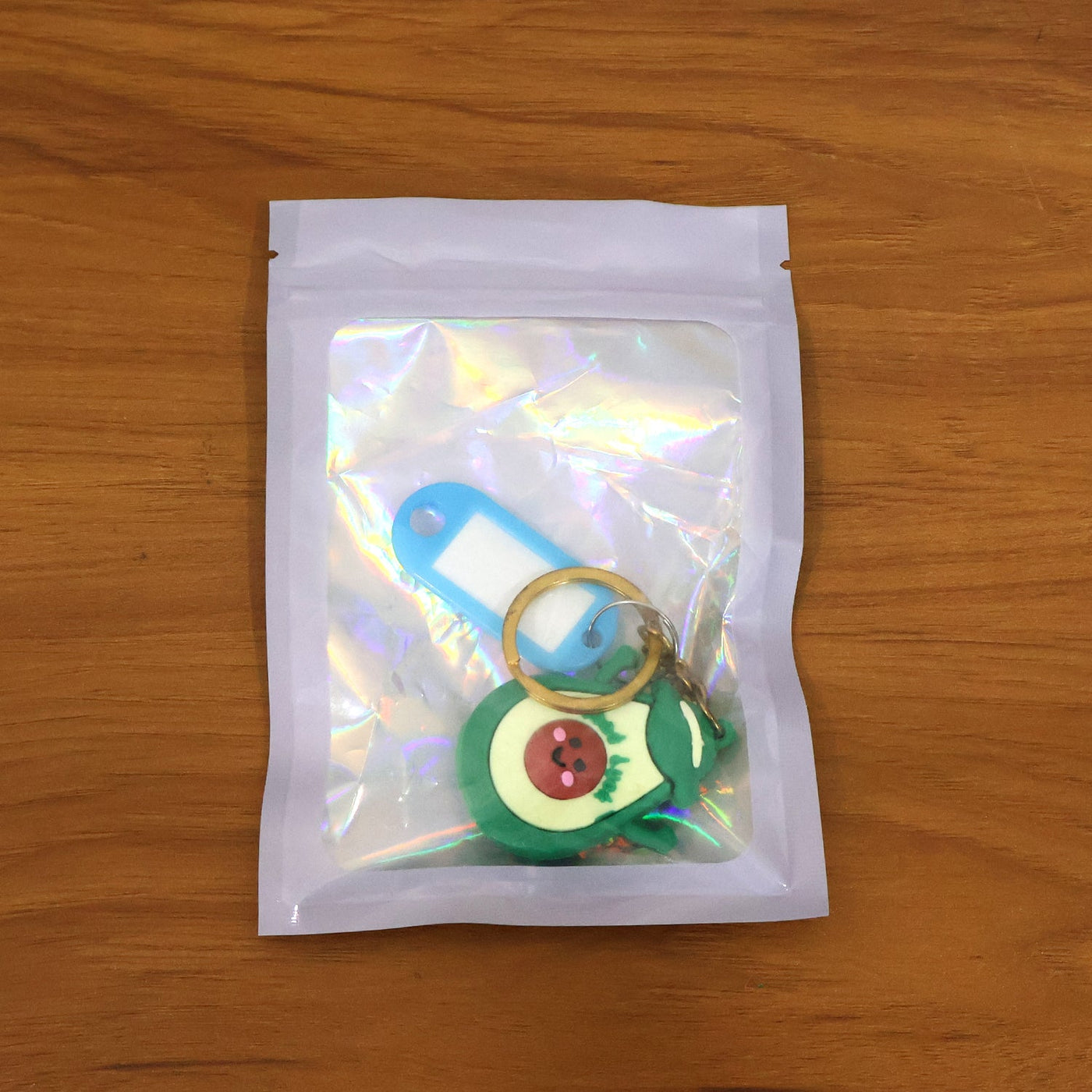 avocado keychain, cartoon character keychain, cute keychain, decorative keychain, “Good Luck” keychain, keychain with name tag, ID tag keychain, backpack keychain, school bag keychain, bag charm keychain, luggage keychain, daily carry accessory, novelty keychain, metal ring keychain